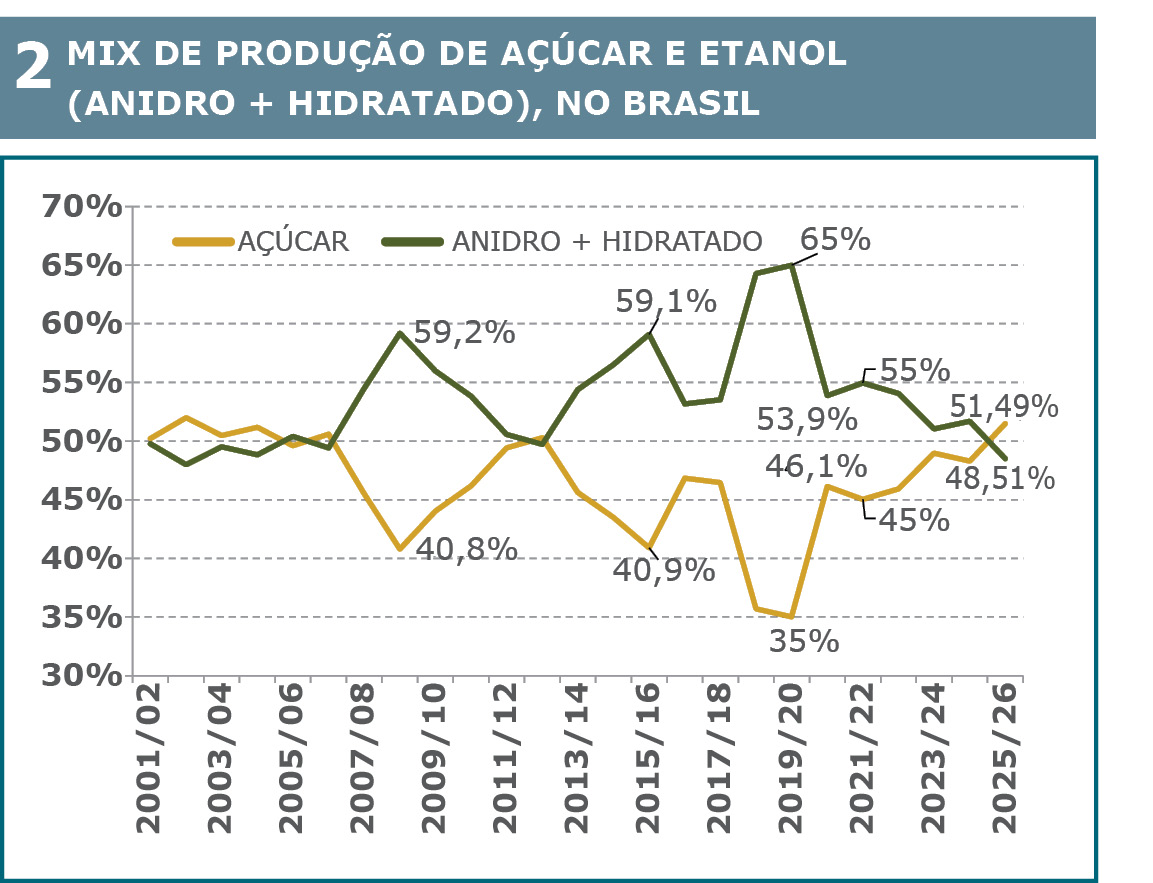 2: MIX DE PRODUÇÃO DE AÇÚCAR E ETANOL