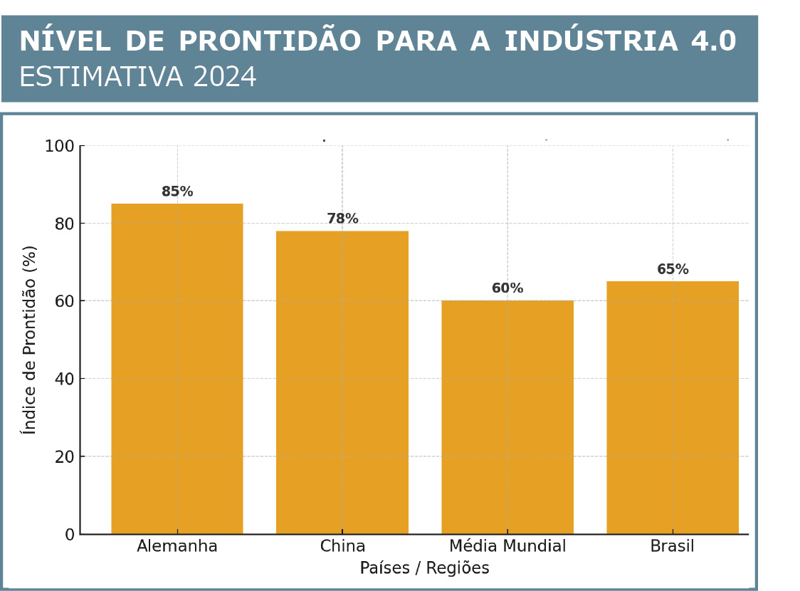 NÍVEL DE PRONTIDÃO PARA A INDÚSTRIA 4.0 - ESTIMATIVA 2024 (Alemanha, China, média Mundial e Brasil)